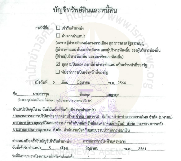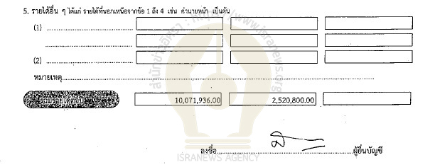 นายสรวุธแจ้งมีรายได้รวมต่อปีโดยประมาณ 10,071,936 บาท เป็น รายได้ประจำ