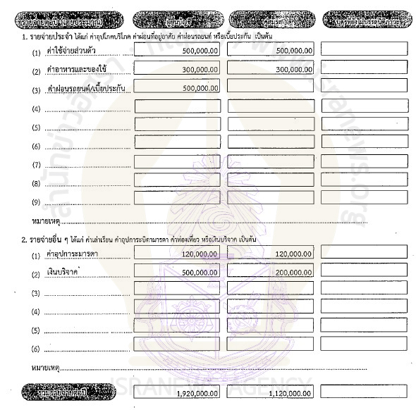 รายจ่ายอื่นๆ ได้แก่ ค่าอุปการะมารดา 120,000 บาท เงินบริจาค 500,000 บาท