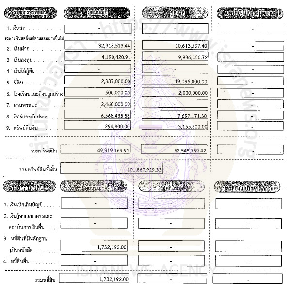 รวมทรัพย์สิน 101,867,929.33 บาท (รวม เงินฝาก 2 คน 33 บัญชี 43,532,050.84 บาท)