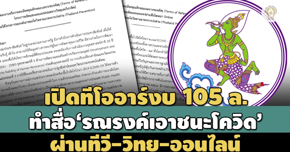 สำหรับทีโออาร์ โครงการผลิตและเผยแพร่ สปอตทางวิทยุ และโทรทัศน์ ภายใต้โครงการรณรงค์เอาชนะโควิดมาตรการเร่งด่วน (Thailand Prevention) มีรายละเอียด ที่น่าสนใจ ดังนี้