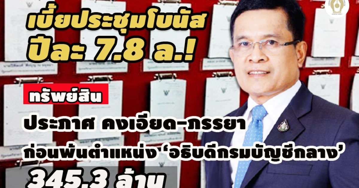 เปิดทรัพย์สิน‘ประภาศ คงเอียด’ อธิบดีกรมบัญชีกลางคนปัจจุบัน ก่อนพ้นตำแหน่ง 345.3 ล. พร้อมเมียนอกสมรส แจ้งมีรายได้ปีละ 10 ล. เฉพาะ เบี้ยประชุม โบนัส 7.8 ล. มากกว่า ‘กุลยา ตันติเตมิท’