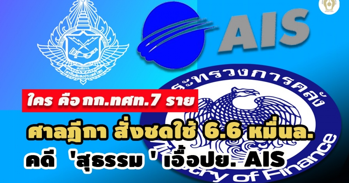 - คดี 'สุธรรม' เอื้อ AIS ศาลฎีกา ชี้ กก.ทศท. 7 ราย บกพร่องด้วย ต้องร่วมชดใช้ 6.6 หมื่นล.
