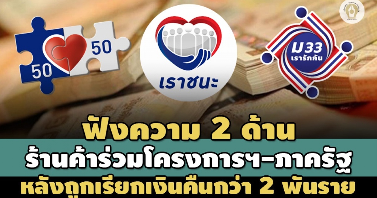 "..มีรายงานว่า กลุ่มผู้ประกอบการร้านค้าที่ได้รับหนังสือเรียกเงินคืนนั้น เป็นกลุ่มร้านที่รับแลกเงินสด และร้านค้าออนไลน์ ซึ่งผู้ค้าบางรายถูกเรียกเงินคืนสูงถึง 17 ล้านบาท ขณะที่ผู้ได้รับหนังสือ มีความเห็นว่า เป็นการเรียกเงินคืนที่ไม่ยุติธรรม และควรเรียกคืนเฉพาะส่วนที่รัฐอุดหนุนมาเท่านั้น อีกทั้ง หนังสือเรียกคืนเงิน ก็ไม่ได้ระบุรายละเอียดว่า ทำผิดเงื่อนไขอย่างไร.."