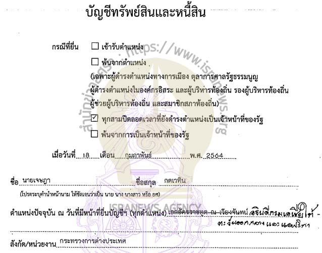 เรื่องบัญชีทรัพย์สินเจ้าหน้าที่ของรัฐอื่น