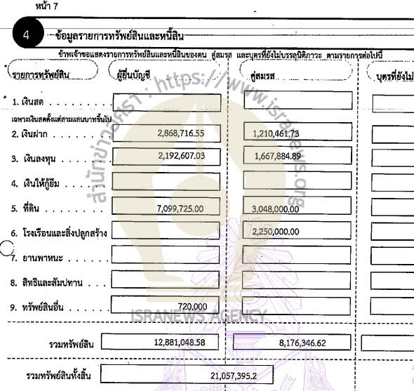 สำนักข่าวอิศรา (www.isranews.org) นำข้อมูลบัญชีแสดงรายการทรัพย์สินและหนี้สินของเจ้าหน้าที่ของรัฐอีก 2 รายมารายงาน