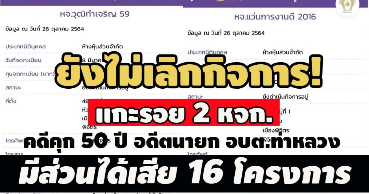 "...น่าสังเกตว่า หจก. แว่นการงานดี 2016 และ หจก.วุฒิทำเจริญ 59 จดทะเบียนจัดตั้งช่วงเวลาไล่เลี่ยกัน มีทุนจดทะเบียน 5 แสนบาทเท่ากัน และอยู่ในจังหวัดพิจิตรเหมือนกันด้วย..."