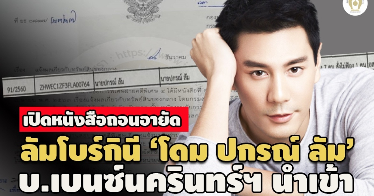 ไขข้อสงสัย!รถหรูยี่ห้อลัมโบร์กินี นักแสดงดัง ‘โดม ปกรณ์ ลัม’ ซื้อจากไหน? พบหนังสือถอนอายัดระบุเป็นของกลางในคดี บ.เบนซ์นครรินทร์ ออโต้ กรุ๊ป พนักงานอัยการมีความเห็นแล้ว ขณะที่ ผจก.ส่วนตัวนักร้องดังแจงก่อนหน้านี้ สั่งประกอบโดยตรงจากนอก เสียภาษีถูกต้อง ยันไม่เกี่ยวข้องกลุ่ม บ.เบนซ์ฯ