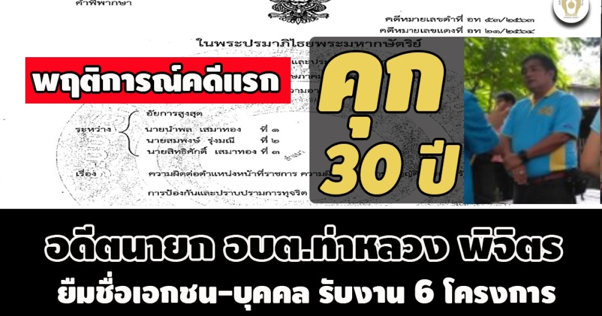 - ศาลคดีทุจริตฯ สั่งจำคุก 30 ปี อดีตนายก อบต.ท่าหลวง พิจิตร มีส่วนได้เสียโครงการก่อสร้าง