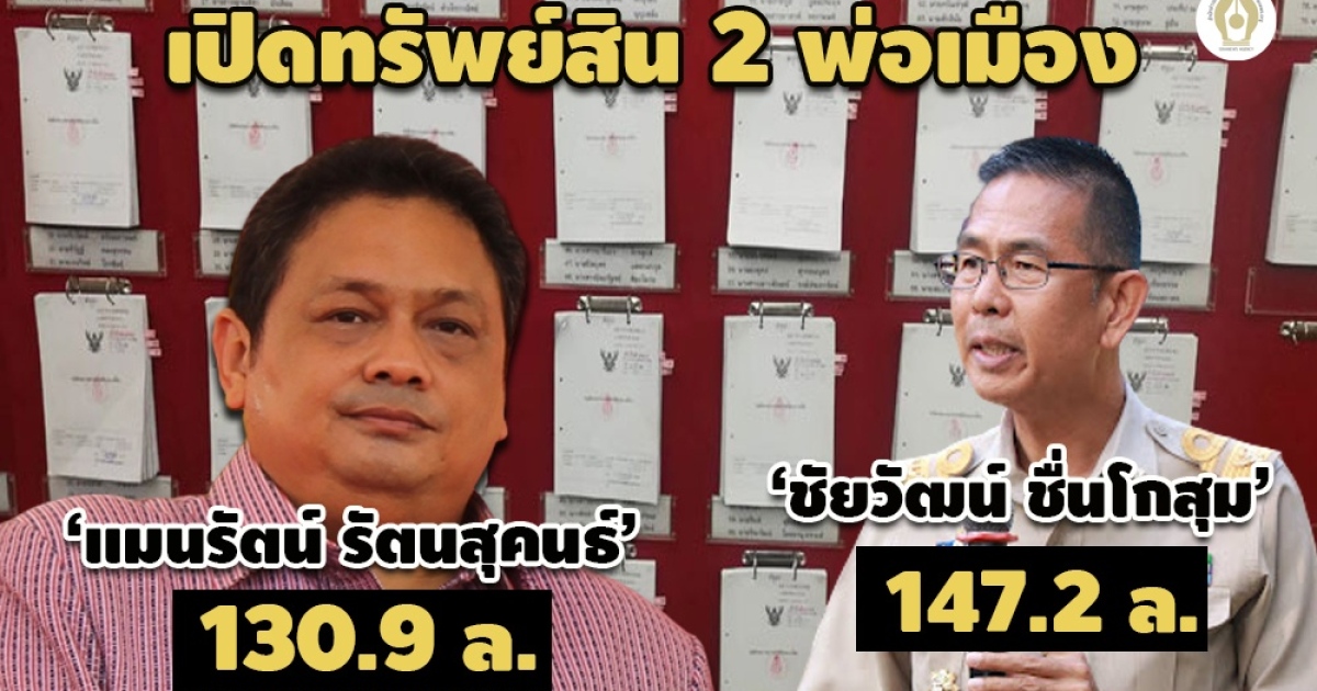 เปิดทรัพย์สิน 2 พ่อเมือง ‘แมนรัตน์ รัตนสุคนธ์’ ผู้ว่าฯ สระบุรี 130.9 ล. เงินฝากรวมหลังบ้าน 109 ล. แจงในสหกรณ์ออมทรัพย์ ก.มหาดไทย 2 บัญชี 64.3 ล. ของครอบครัวภรรยา ขณะที่ ‘ชัยวัฒน์ ชื่นโกสุม’รองปลัดกระทรวงมหาดไทย ยุคนั่งผู้ว่าฯปทุมธานี 147.2 ล. ภรรยาได้ที่ดินมรดก 35 ล. พระเครื่องอื้อ