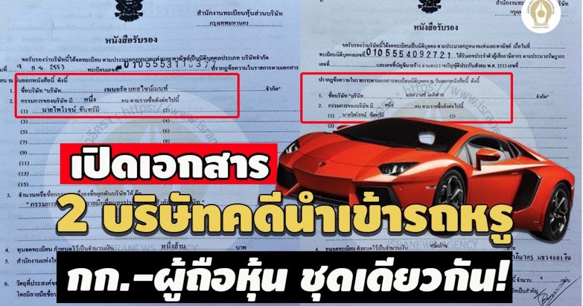 เปิดเอกสารจดทะเบียน บ.เจเนอรัล แอสไซน์เมนท์ - แอดวานซ์ โมดิฟาย 2 รายในลิสต์ดีเอสไอ พัวพันคดีนำเข้ารถหรูมีทุนล้านเดียวพบกรรมการ ผู้ถือหุ้นใหญ่ ชุดเดียวกัน โยงคดีลัมโบร์กินี ‘ผู้กำกับโจ้’