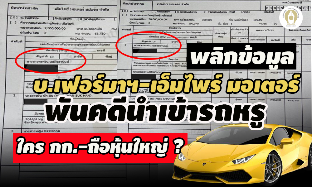 - กก.- ผู้ถือหุ้น ชุดเดียวกัน ! เปิดเอกสาร2 บริษัทคดีนำเข้ารถหรู