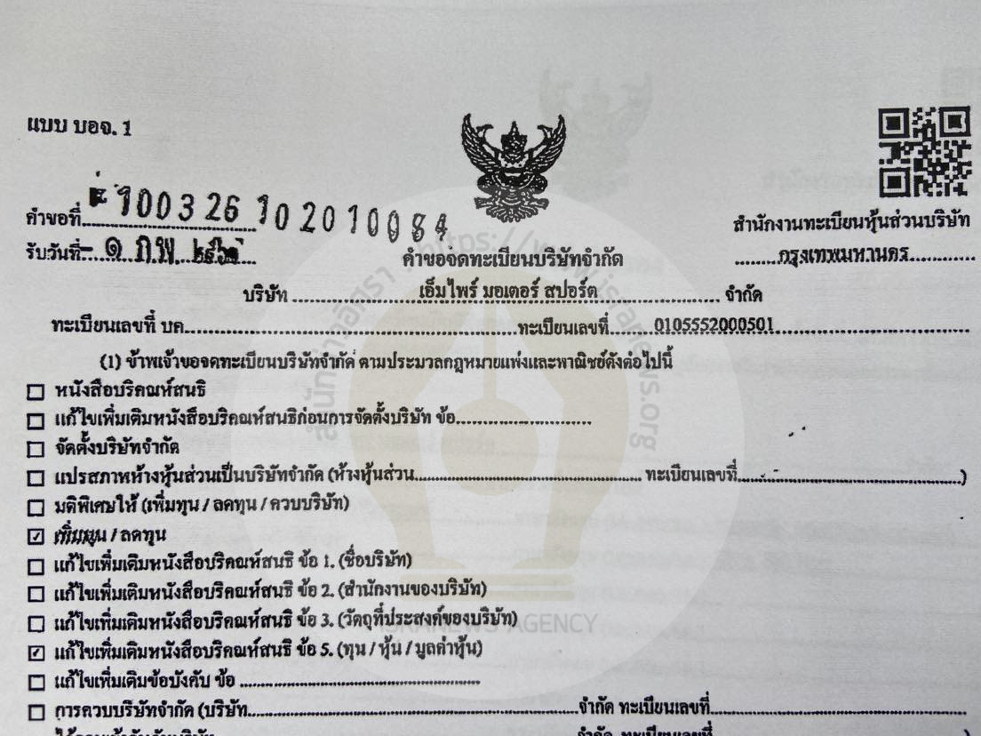 1 ก.พ.2561 จดทะเบียนลดทุนเหลือ 1,900,000 บาท
