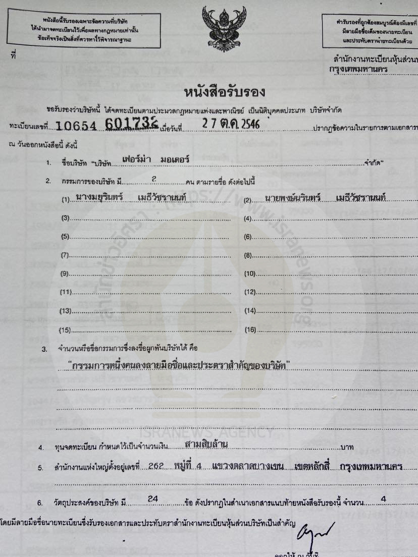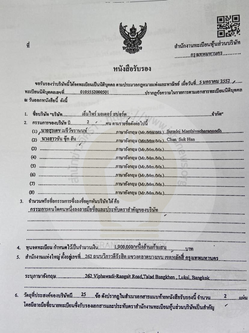 5 เม.ย.2550 จดทะเบียนเพิ่ม นายสุรเดช เมธีวัชรานนท์ อีก 1 คน รวมเป็น 3 คน