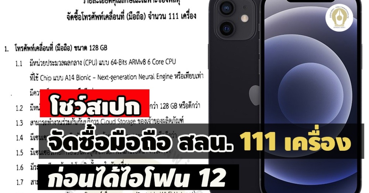 กรณีสำนักเลขาธิการนายกรัฐมนตรี เผยแพร่สัญญาซื้อขายโทรศัพท์เคลื่อนที่ ยี่ห้อแอปเปิ้ล รุ่นไอโฟน 12 จำนวน 111 เครื่อง แบ่งเป็นความจุ 128 GB 23 เครื่อง และ ความจุ 64 GB 88 เครื่อง ราคารวม 2,681,355 บาท