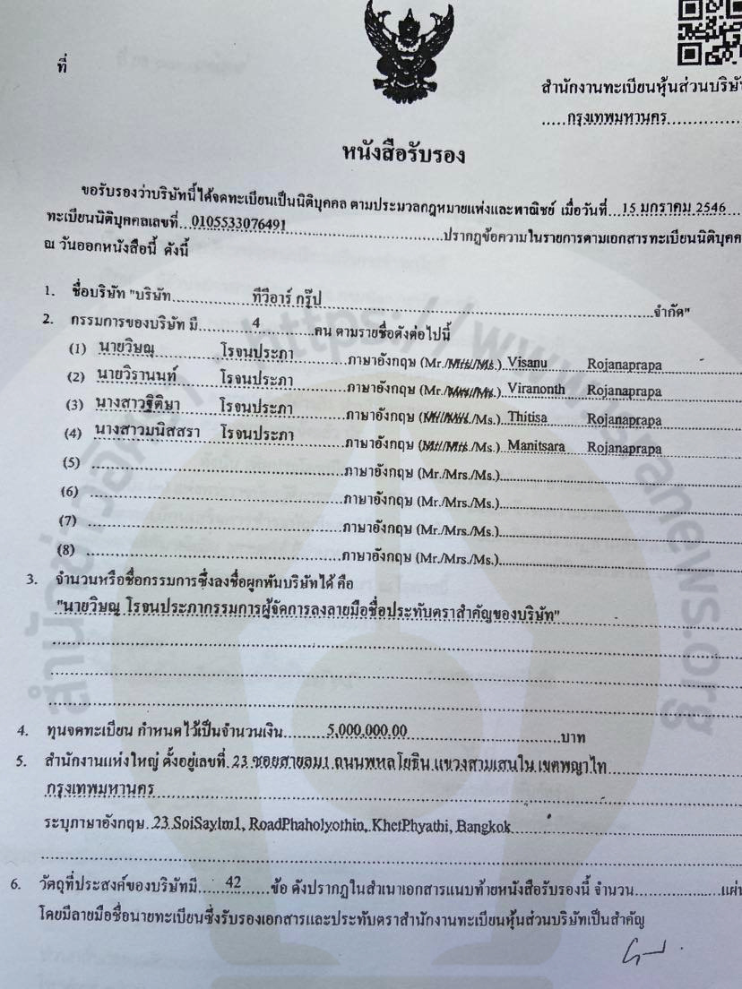 7 มี.ค.2560 ทุน 5 ล้านบาท ที่ตั้งเลขที่ 23 ซอยสายลม 1 ถนนพหลโยธิน แขวงสามเสนใน เขตพญาไท กรุงเทพฯ