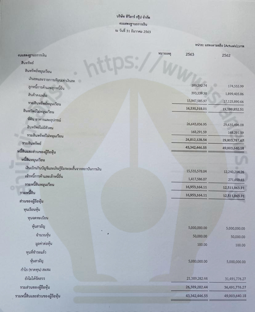 งบดุล สินทรัพย์รวม 43,342,446.55 บาท หนี้สิน 16,953,164.11 บาท กำไรสะสม 21,389,282.44 บาท