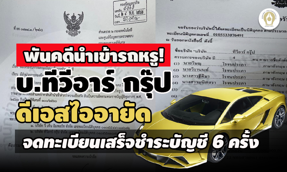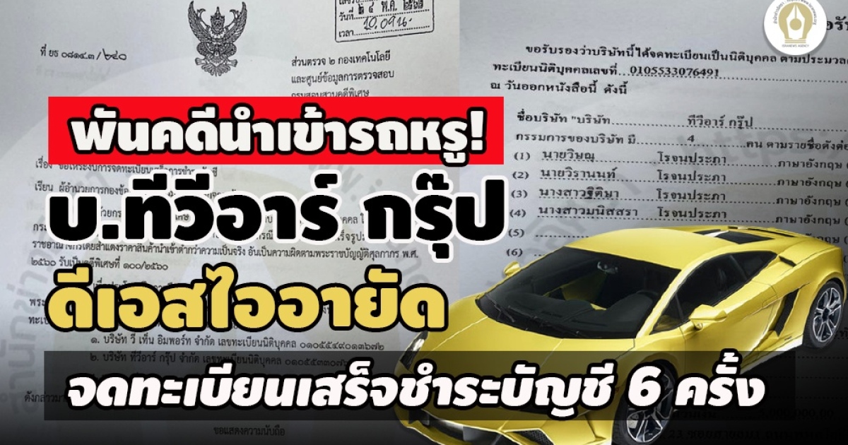 บริษัท ทีวีอาร์ กรุ๊ป จำกัด เป็นอีก 1 ราย พัวพันคดีนำเข้ารถหรู