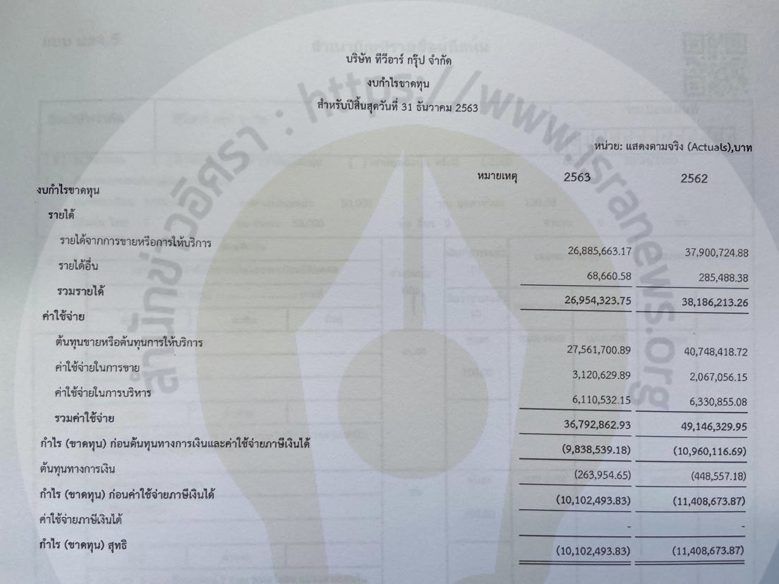 จากการตรวจสอบข้อมูลกับกรมพัฒนาธุรกิจการค้าพบว่า บริษัท ทีวีอาร์ กรุ๊ป จำกัด จดทะเบียนวันที่ 3 กรกฎาคม 2533 ทุน 1 ล้านบาท ขายรถยนต์นำเข้า ทุกชนิด ทุกประเภทให้เช่ารถยนต์ทุกรุ่น ทุกชนิด ทุกประเภท ที่ตั้งเลขที่ 533/9 ถ.ศรีอยุธยา แขวงพญาไท เขตราชเทวี กรุงเทพมหานคร