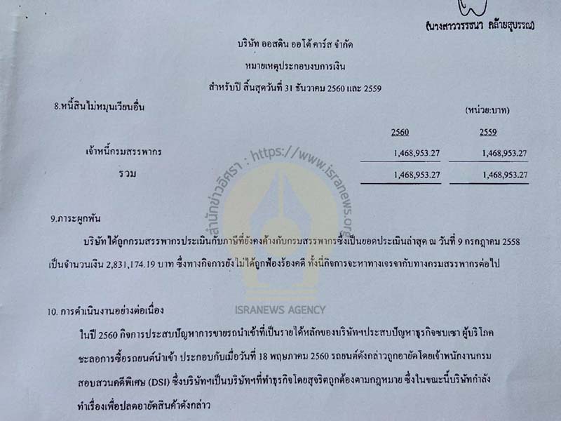 สำนักข่าวอิศรา (www.isranews.org) ตรวจสอบพบว่า บริษัท ออสติน ออโต้ คาร์ส จำกัด เดิมชื่อ บริษัท เอส.ที.บี.ล็อตโต จำกัด จดทะเบียน วันที่ 3 กุมภาพันธ์ 2553 ทุน 1 ล้านบาท ขายรถยนต์ ที่ตั้งเลขที่ 1/13 ถ.ตรีเพชร แขวงบูรพาภิรมย์ เขตพระนคร กรุงเทพมหานคร นายยิ่ง ศรีอนันต์ เป็นกรรมการ ผู้เริ่มก่อการจดทะเบียน (นายยิ่ง เป็นบริษัท เดอะ แกลเลอรี่ ออโต้ อิมพอร์ต จำกัดด้วย) หลังจากนั้นจดทะเบียนเปลี่ยนแปลงหลายครั้ง