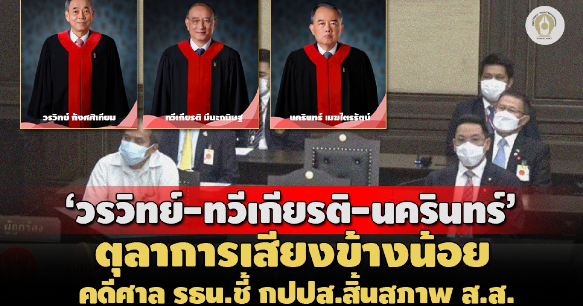ขณะที่ตุลาการเสียงข้างน้อย 3 คน ประกอบด้วย นายวรวิทย์ กังศศิเทียม ประธานศาลรัฐธรรมนูญ , นายทวีเกียรติ มีนะกนิษฐ และ นายนครินทร์ เมฆไตรรัตน์