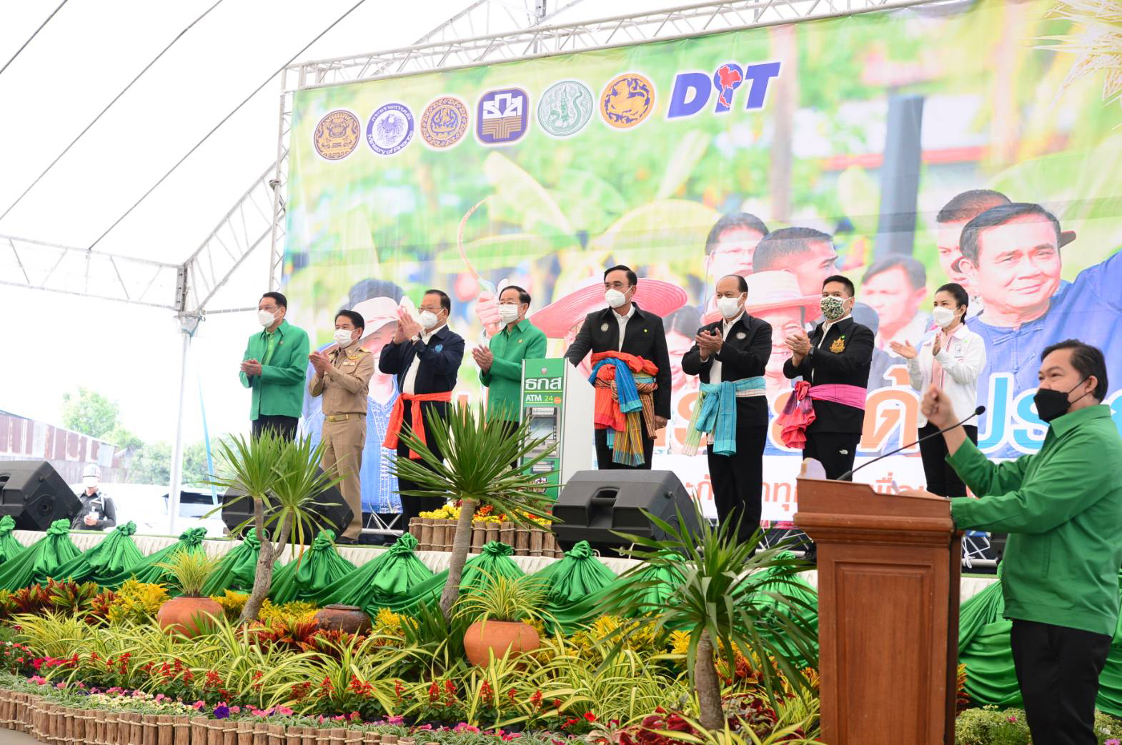 (พล.อ.ประยุทธ์ จันทร์โอชา กดปุ่มโอนเงินชดเชยส่วนต่างประกันรายได้ชาวนา ที่ จ.สุพรรณบุรี เมื่อวันที่ 9 ธ.ค.2564 ที่มาภาพ : กระทรวงเกษตรฯ)