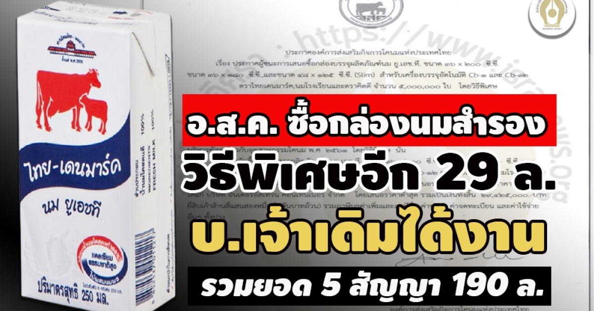 เมื่อสำนักข่าวอิศรา ได้รับแจ้งข้อมูลจากแหล่งข่าวจาก อ.ส.ค.ว่า ในช่วงเดือนกันยายน 2563 บริษัทอินเตอร์ อิสเทิร์น คอนเทนเนอร์ จำกัด ก็ปรากฏชื่อเป็นผู้ชนะการเสนอราคาการจัดซื้อกล่องบรรจุผลิตภัณฑ์นม ยู.เอช.ที. ขนาด 36X200 ซี.ซี., ขนาด 36X180 ซี.ซี. และขนาด 48X125 ซี.ซี. (Slim) สำหรับเครื่องบรรจุอัตโนมัติ Cb-1 และ Cb-12 ตราไทยเดนมาร์ค,นมโรงเรียนและตราคิดดี จำนวน 5,000,000 ใบ เพื่อใช้สำรองจ่ายในการผลิต วงเงิน 29,425,000 บาท โดยวิธีพิเศษ อีก 1 สัญญา (ดูเอกสารประกอบ)