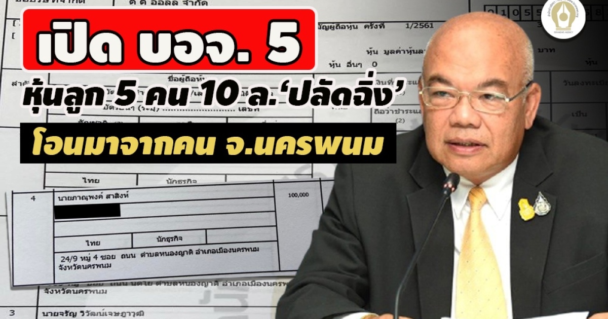 - ไม่ใช่แค่เมียมีเงินลงทุน 2 ล.! พบลูก 5 คน ‘ปลัดฉิ่ง’ ถือหุ้น 10 ล้าน บ.อสังหาฯ