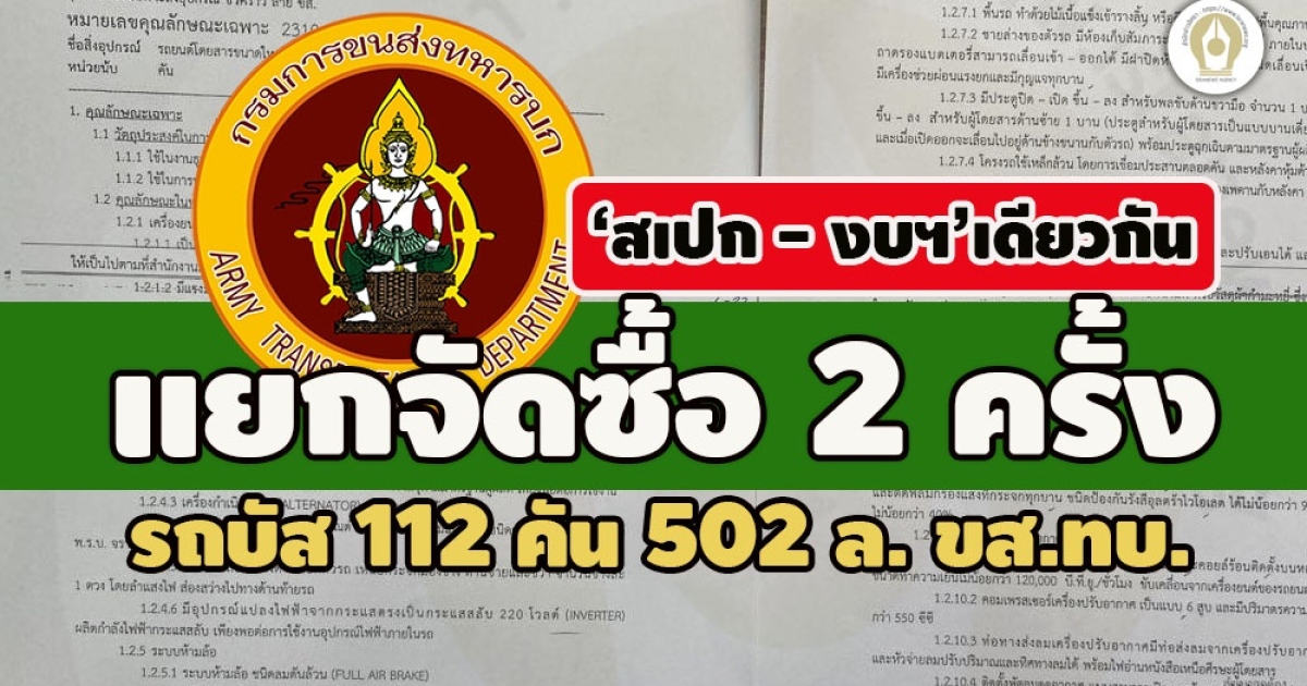 - เจ้ากรมฯ ชง - ผู้ช่วย ผบ.ทบ.อนุมัติ สเปก ก่อนใช้จัดซื้อรถบัส 112 คัน 504 ล.