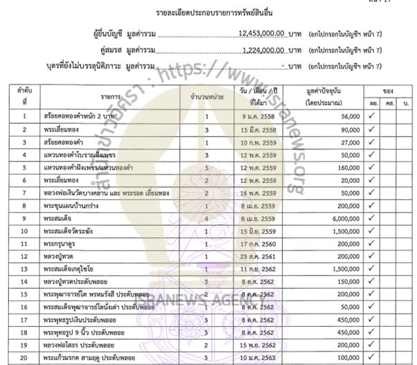 - ทรัพย์สิน 6 นายกเทศฯเมือง จ.ขอนแก่น-นายกหญิงบ้านทุ่ม 39 ล.เครื่องเพชร พระดังอื้อ