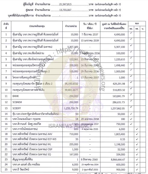 - ทรัพย์สิน 6 นายกเมือง จ.พระนครศรีอยุธยา -‘ณรงค์’678.9 ล. -2 คนใช้รถยนต์ญาติ