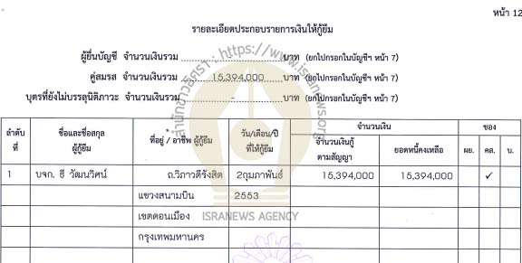 น.ส.อธิรัตน์ คงแก้ว อายุ 35 ปี สถานะอยู่กินกันฉันสามีภรรยา ทรัพย์สิน 72,497,100.71 บาท จำแนกเป็น เงินสด 8,000,000 บาท เงินฝาก 78,033.71 บาท (6 บัญชี) เงินลงทุน 13,755,067 บาท ( 9 รายการ) เงินให้กู้ยืม 15,394,000 บาท (บริษัท ธี วัฒนวิศน์ จำกัด - 2 ก.พ.2553) ที่ดิน 10,000,000 บาท (1 แปลง) โรงเรือนและสิ่งปลูกสร้าง 11,000,000 บาท (2 หลัง) ยานพาหนะ 8,800,000 บาท (3 คัน) ทรัพย์สินอื่น 5,470,000 บาท (กระเป๋าแบรนด์เนม 5 ใบ นาฬิกา 3 เรือน) ไม่มีหนี้สิน