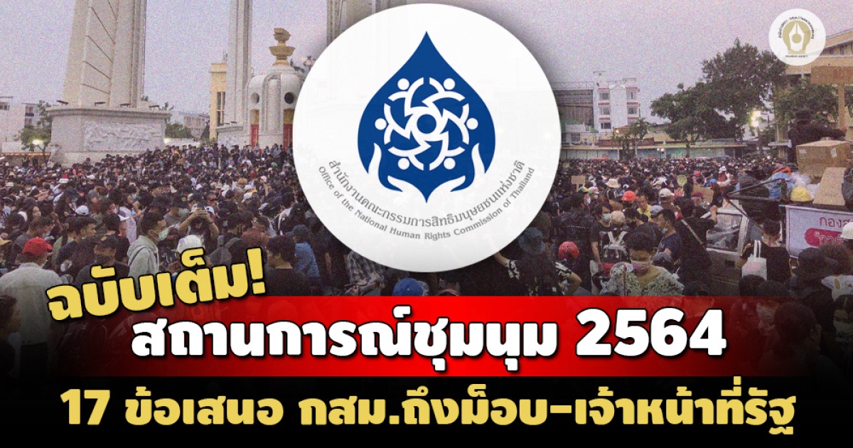 หมายเหตุสำนักข่าวอิศรา (www.isranews.org) : เมื่อวันที่ 24 ธ.ค.ที่ผ่านมา คณะกรรมการสิทธิมนุษยชน (กสม.) เผยแพร่รายงานผลการตรวจสอบการละเมิดสิทธิมนุษยชน กรณีการชุมนุมทางการเมืองระหว่างเดือน ก.ค. - ก.ย.2564