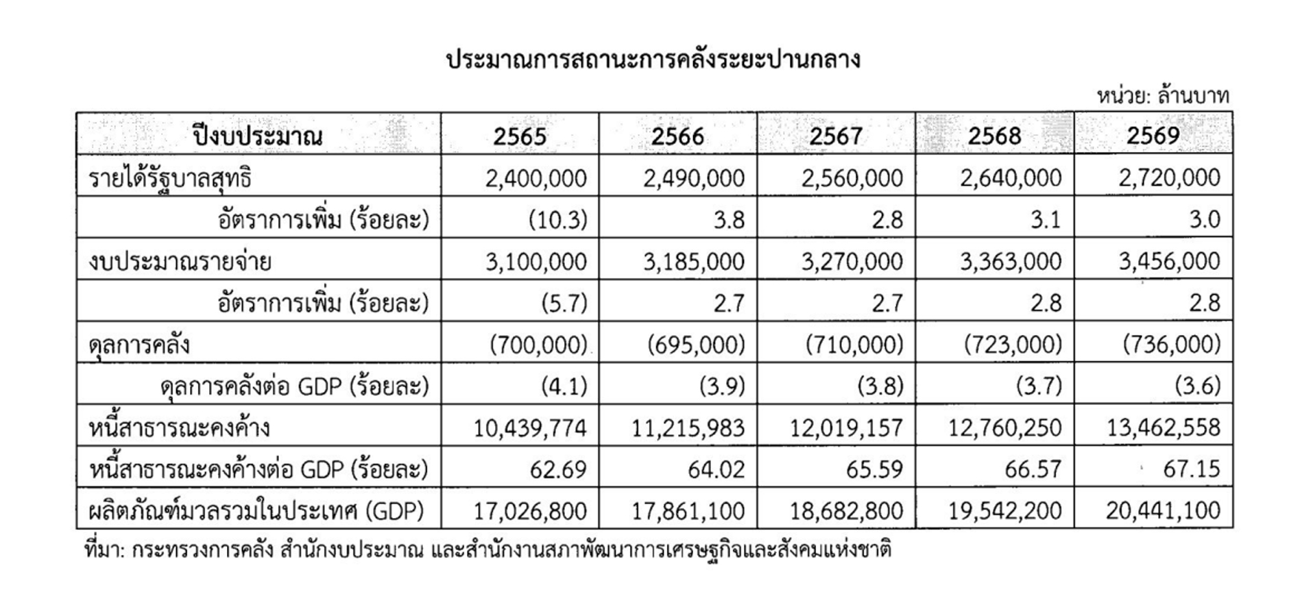 (ที่มา : แผนการคลังระยะปานกลาง (ปีงบประมาณ 2566-2569 ที่ครม.เห็นชอบเมื่อวันที่ 21 ธ.ค.2564)