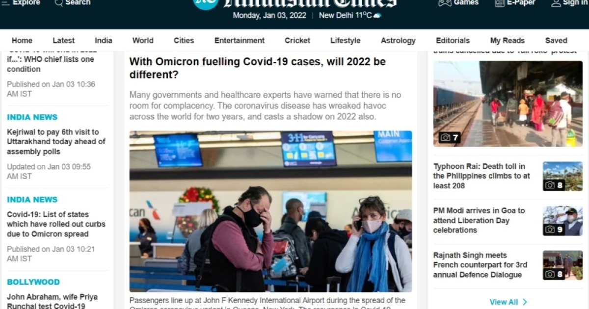 ล่าสุดสำนักข่าวฮินดูสถานไทม์ของประเทศอินเดียเองก็มีการออกมาพยากรณ์เกี่ยวกับสถานการณ์โดยรวมที่จะเกิดขึ้นเกี่ยวกับไวรัสโควิด-19 ทั่วโลกเช่นกันในหัวข้อรายงานชื่อว่า “สถานการณ์การระบาดของไวรัสโควิดสายพันธุ์โอไมครอนนั้นจะเกิดความแตกต่างของสถานการณ์ไวรัสโควิด-19 ในปี 2565” ซึ่งสำนักข่าวอิศรา (www.isranews.org) ได้นำรายงานดังกล่าวมานำเสนอ มีรายละเอียดดังนี้