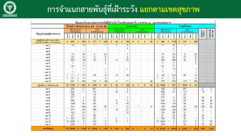ทั้งนี้ เมื่อวันที่ 3 ม.ค. 2565 พบผู้ติดเชื้อรายใหม่ 282 ราย ครบถ้วนทุกเขตสุขภาพแล้ว กระจายไปทั่ว 54 จังหวัด แต่ส่วนใหญ่ผู้ป่วยหายดีแล้ว และที่รักษาตัวก็อยู่ในโรงพยาบาล ไม่ได้ออกมาภายนอก
