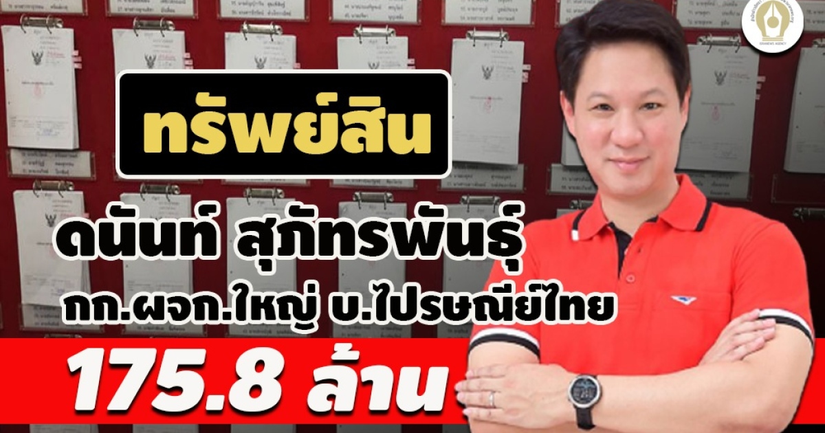 เปิดทรัพย์สินผู้ดำรงตำแหน่งระดับสูงราย ‘ดนันท์ สุภัทรพันธุ์’ กรรมการผจก.ใหญ่ บ.ไปรษณีย์ไทย 175.8 ล. เงินลงทุนรวม 25.1 ล. ภรรยา นักธุรกิจ ถือครองที่ดิน 45 แปลง 68.2 ล. เครื่องประดับ 31 รายการ 44.4 ล. แจ้งมีรายได้ 3.7 ล.ต่อปี ไม่มีข้อมูล ภ.ง.ด.คู่สมรส