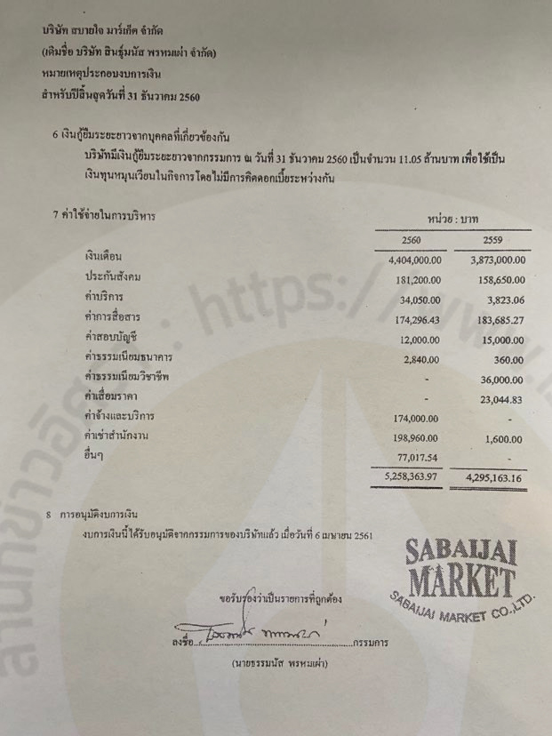 หากย้อนกลับไปดูข้อมูลข้างต้น พบว่า ระหว่างปี 2561 (ร.อ.ธรรมนัส เป็นกรรมการ) -2563 (นางอริสรา เป็นกรรมการ) บริษัทสบายใจ มาร์เก็ต ของ ร.อ.ธรรมนัส มีหนี้สินเงินกู้ยืมจากกรรมการ จำนวน 23.9 - 29.3 ล้านบาท