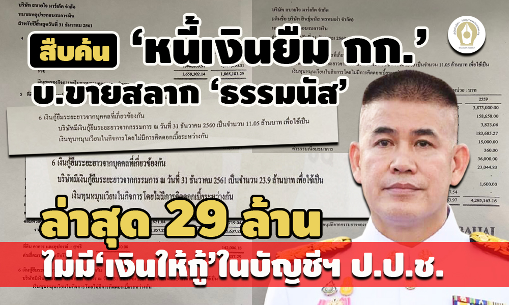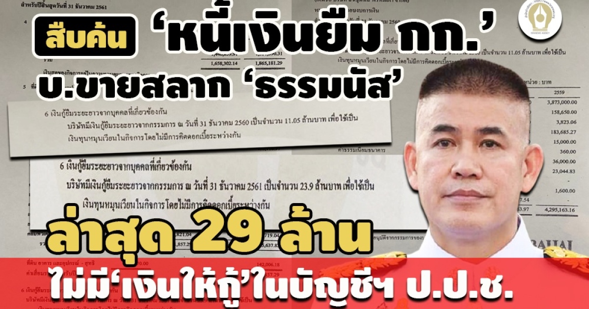 - ปริศนา!บ.ขายสลาก แจ้งมีหนี้เงินกู้ยืม กก. 29 ล. ไม่มีในบัญชีทรัพย์สิน‘ธรรมนัส’