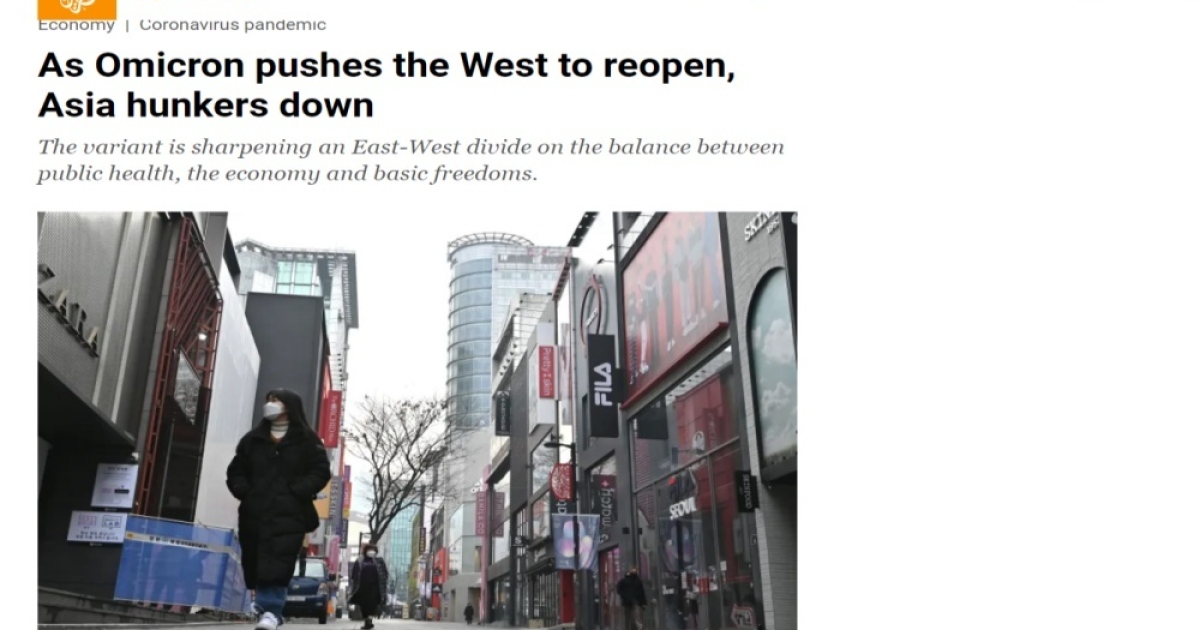 ในขณะที่ไวรัสโควิดสายพันธุ์โอไมครอนที่มีศักยภาพในการแพร่เชื้อสูง แต่มีความร้ายแรงของโรคต่ำได้ระบาดจนกลายเป็นไวรัสโควิดสายพันธุ์หลัก ส่งผลผลักดันให้กลุ่มประเทศตะวันตกได้ดำเนินนโยบายในด้านการเปิดประเทศมากขึ้น แต่สถานการณ์ในทวีปเอเชียนั้นกลับเป็นตรงข้ามกับตะวันตกโดยสิ้นเชิง เนื่องจากยังคงมีความกังวลเกิดขึ้นกับไวรัสสายพันธุ์นี้ ซึ่งจากความแตกต่างกันดังกล่าวนี้ ส่งผลทำให้เกิดความแบ่งแยกกันมากขึ้นในหลายๆด้านระหว่างตะวันตกและวันออก อาทิ ในประเด็นเรื่องนโยบายสาธารณสุข,เศรษฐกิจ,สิทธิขั้นพื้นฐาน และเสรีภาพ