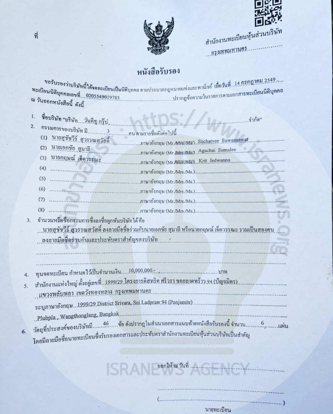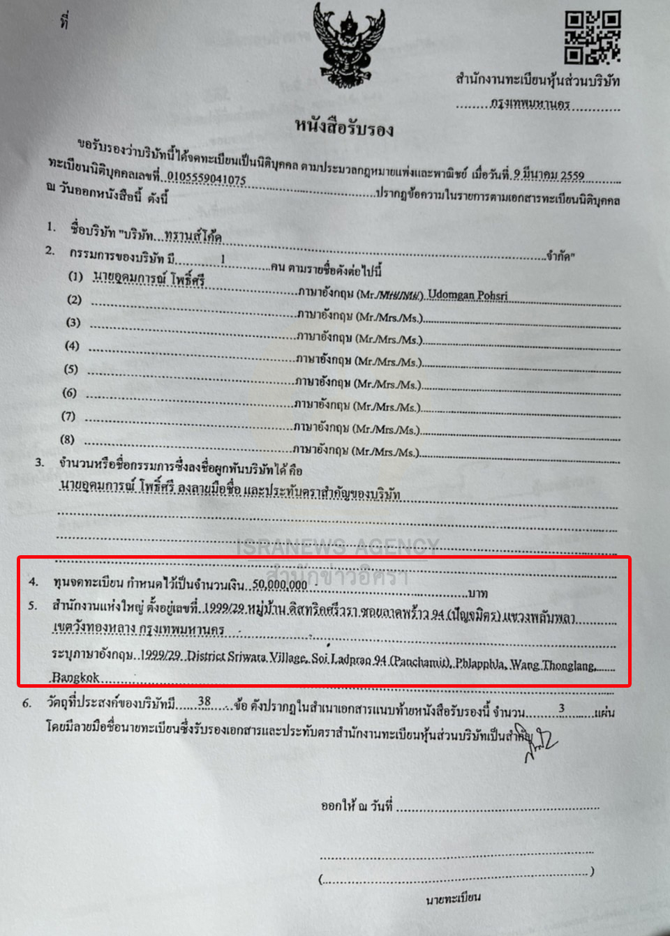 ล่าสุด สำนักข่าวอิศรา สืบค้นข้อมูลเอกสารจดทะเบียนจัดตั้ง บริษัท ไอทีเอส คอนซัลแตนซี จำกัด ที่แจ้งไว้กับกรมพัฒนาธุรกิจการค้า