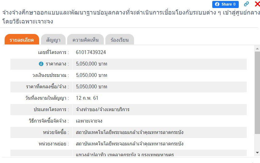 สำนักข่าวอิศรา ได้ย้อนกลับไปตรวจสอบฐานข้อมูลจัดซื้อจัดจ้างหน่วยงานภาครัฐ พบว่า บริษัท ไอทีเอส คอนซัลแตนซี จำกัด ปรากฎชื่อเป็นคู่สัญญางานจัดซื้อจัดจ้างกับ สถาบันเทคโนโลยีพระจอมเกล้าเจ้าคุณทหารลาดกระบัง (สจล.) ด้วย จำนวน 1 สัญญา ในช่วงปี 2561 คือ โครงการ จ้างจ้างศึกษาออกแบบและพัฒนาฐานข้อมูลกลางที่จะดำเนินการเชื่อมโยงกับระบบต่าง ๆ เข้าสู่ศูนย์กลาง โดยวิธีเฉพาะเจาะจง วงเงิน 5,050,000 บาท วันทำสัญญา 12 ก.พ. 61 (ดูข้อมูลประกอบ)
