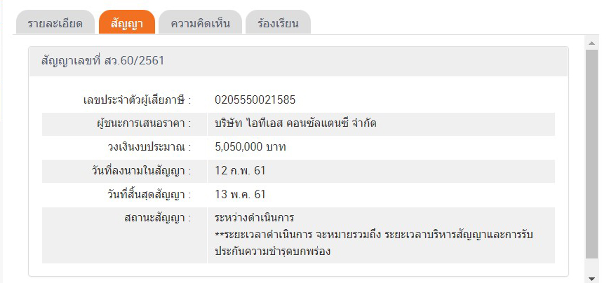 อย่างไรก็ดี ในช่วงที่ผ่านมาโครงการจัดซื้อจัดจ้างนี้ ยังไม่เคยปรากฏข้อมูลถูกร้องเรียนเรื่องความไม่โปร่งใสแต่อย่างใด