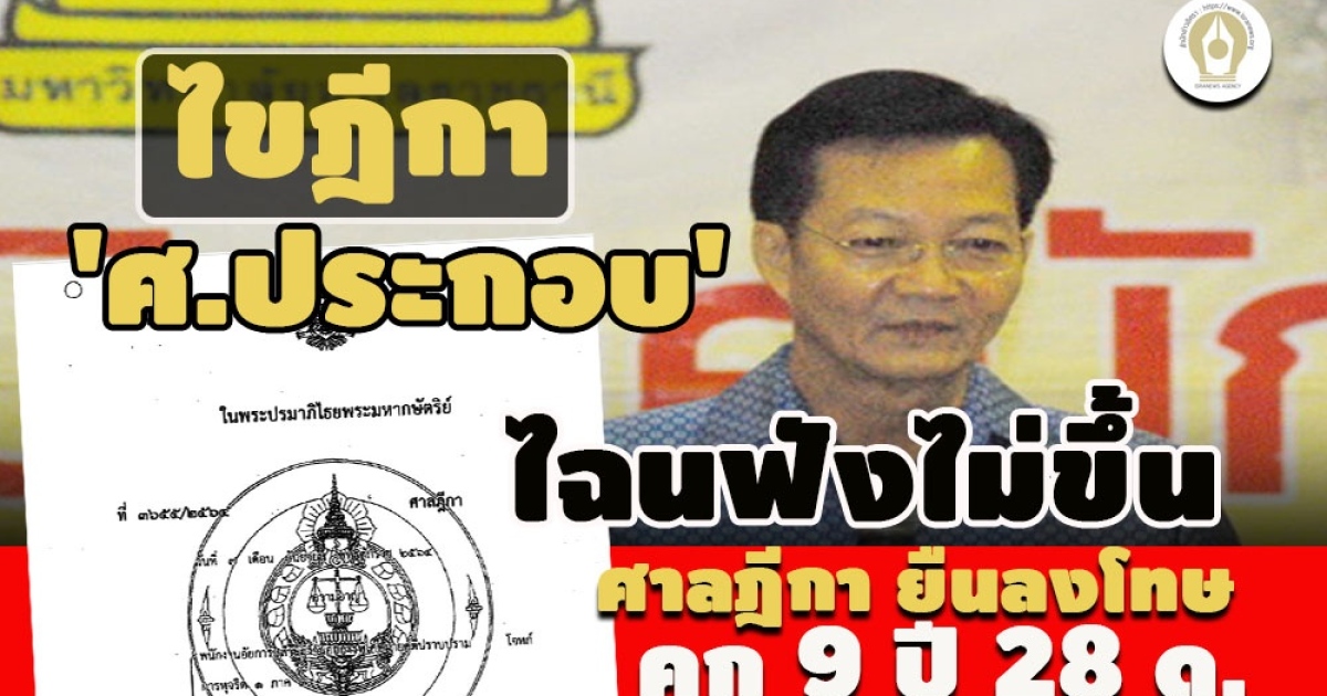 ศาลฎีกา พิพากษายืนตามคำพิพากษาศาลอุทธรณ์ เป็นผลให้ "ศ.ประกอบ วิโรจนกุฎ อดีตอธิการบดีมหาวิทยาลัยอุบลราชธานี" ต้องรับโทษจำคุก รวม 9 ปี 28 เดือน