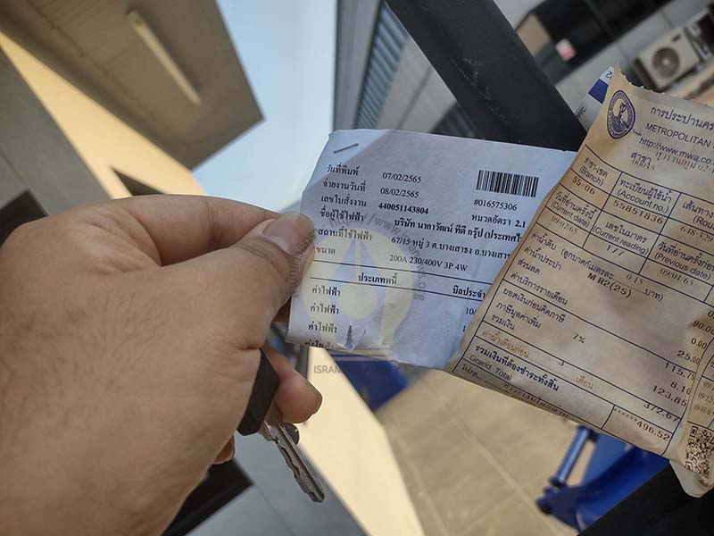 พบว่า พื้นที่ดังกล่าว มีสภาพเป็นโกดังสภาพปิดตาย ไม่มีผู้อยู่อาศัย มีใบเสร็จค่าไฟฟ้า ระบุที่อยู่เลขที่ 67/15 ต.บางเสาธง อ.บางเสาธง จ.สมุทรปราการ ระบุชื่อผู้ใช้ไฟฟ้าว่าบริษัท นากาวัฒน์ ทีดี จำกัด