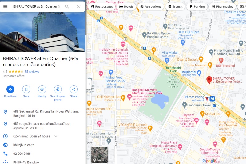 ต่อมา ผู้สื่อข่าวสำนักข่าวอิศรา ได้เดินทางลงพื้นที่ไปตรวจสอบข้อมูล บริษัท นากาวัฒน์ ทีดี ตามที่แจ้งไว้กับกรมพัฒนาธุรกิจการค้า คือ เลขที่ 689 ถนนสุขุมวิท ซึ่งเป็นอาคารภิรัชทาวเวอร์ แอท เอ็มควอเทียร์ อยู่ใกล้กับห้างสรรพสินค้าเอ็มควอเทียร์ (ดูภาพประกอบ)