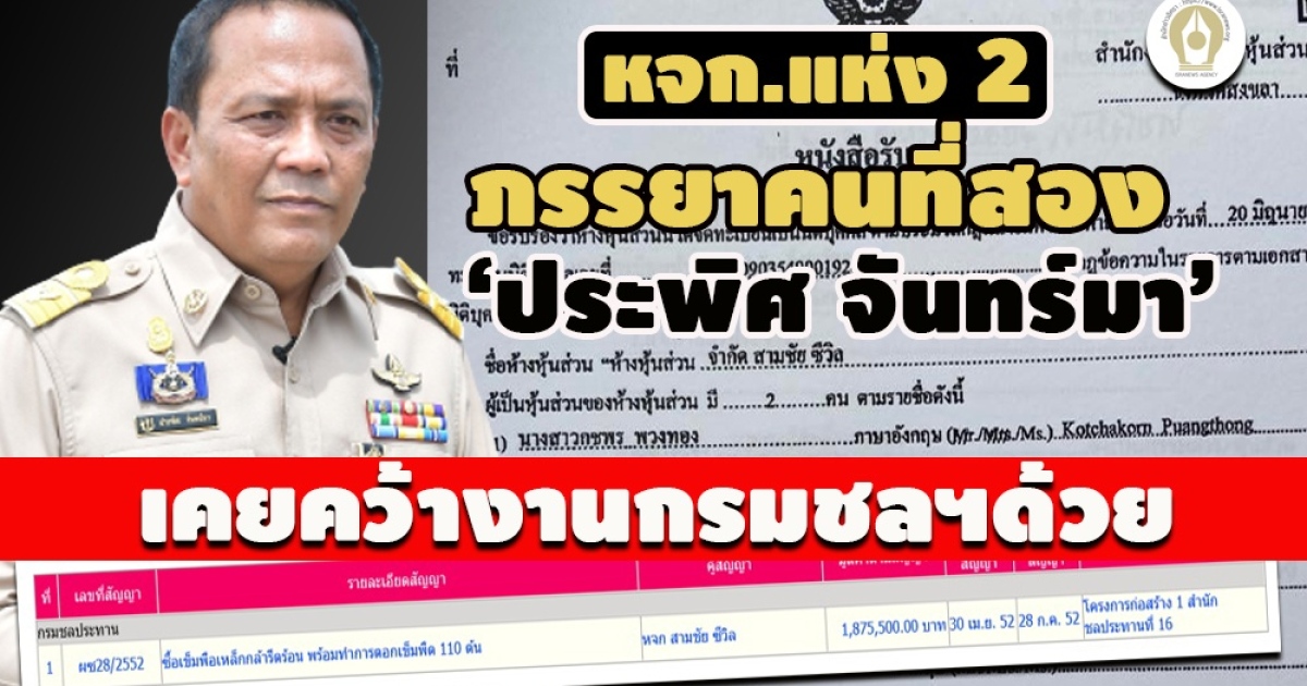 ข้อมูลเพิ่ม! ธุรกิจรับเหมาแห่งที่ 2 หจก.สามชัย ซีวิล ภรรยาคนที่สอง ‘ประพิศ จันทร์มา’อธิบดีกรมชลประทาน เคยคว้างานจัดซื้อจัดจ้างโครงการก่อสร้าง 1 สำนักชลประทาน ด้วย 1 สัญญา 1.8 ล. ช่วงปี 2552 นอกเหนือจาก ห้างฯ มนตรีภัณฑ์ คู่ค้า 17 สัญญา 73.3 ล.ช่วงปี 2543-2553