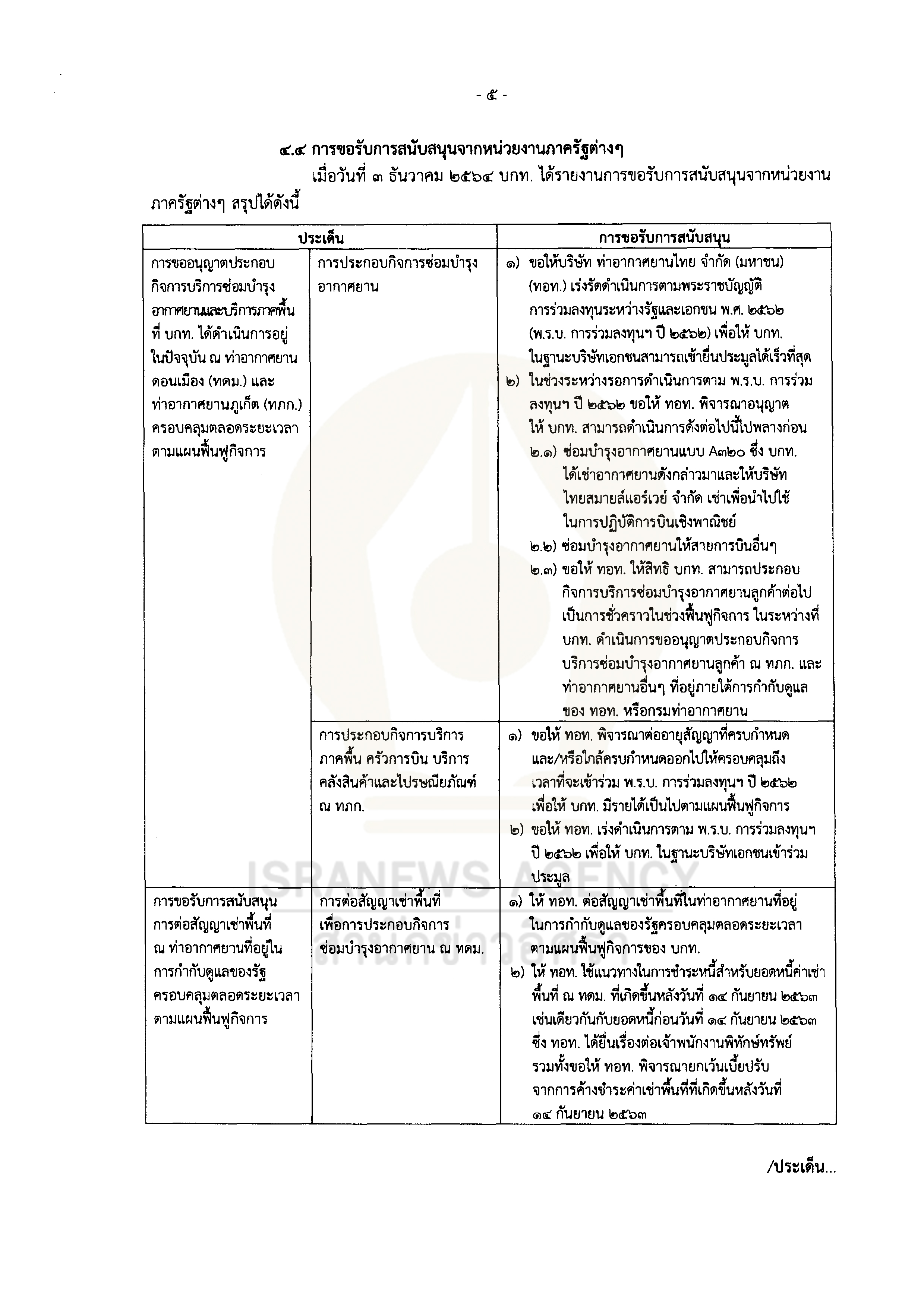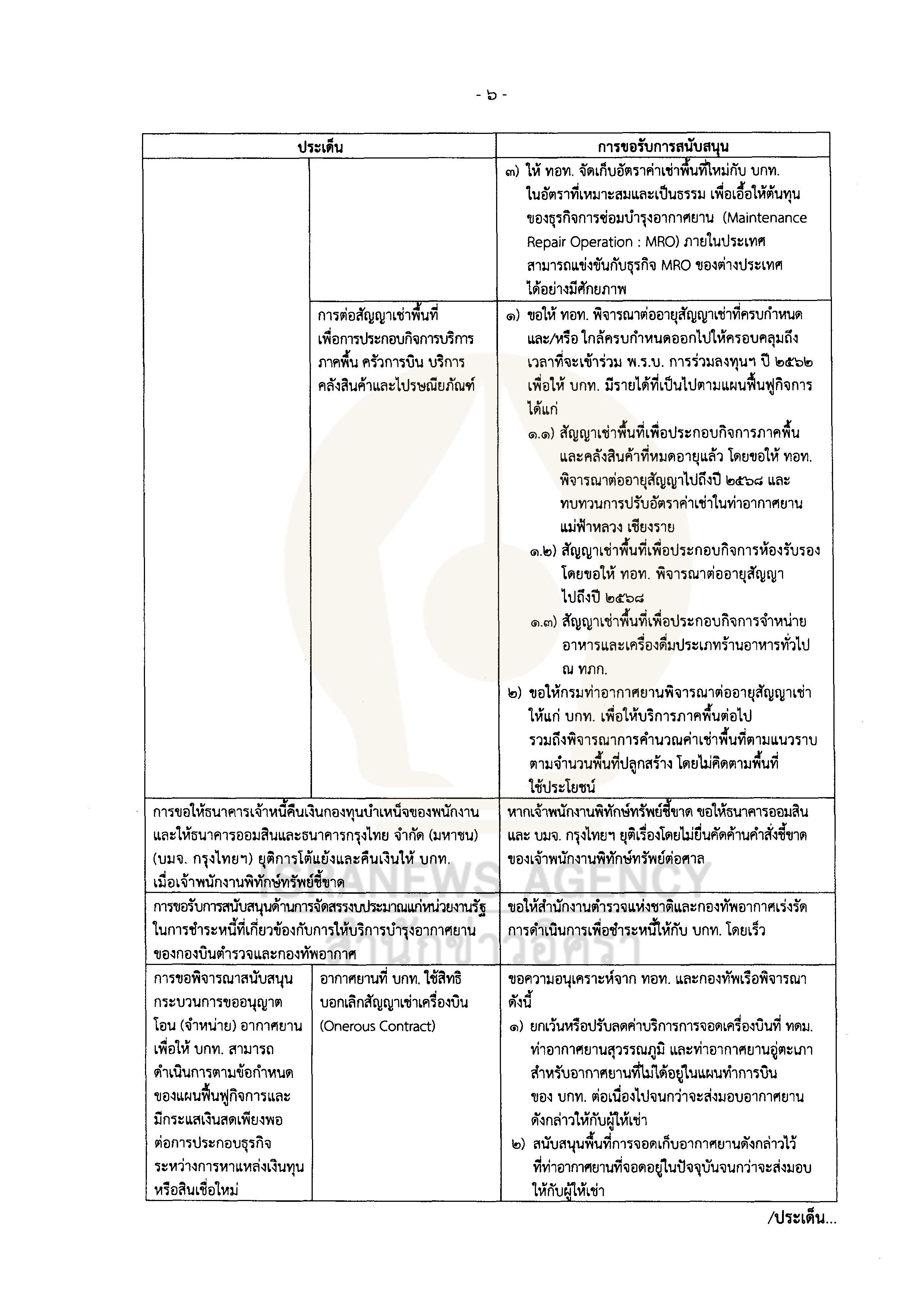 การขอรับการสนับสนุน การต่อสัญญาเช่าพื้นที่ ณ ท่าอากาศยานที่อยู่ในการกำกับดูแลของรัฐครอบคลุมตลอดระยะเวลาตามแผนฟื้นฟูกิจการ ซึ่งประกอบด้วย 2 ประเด็น