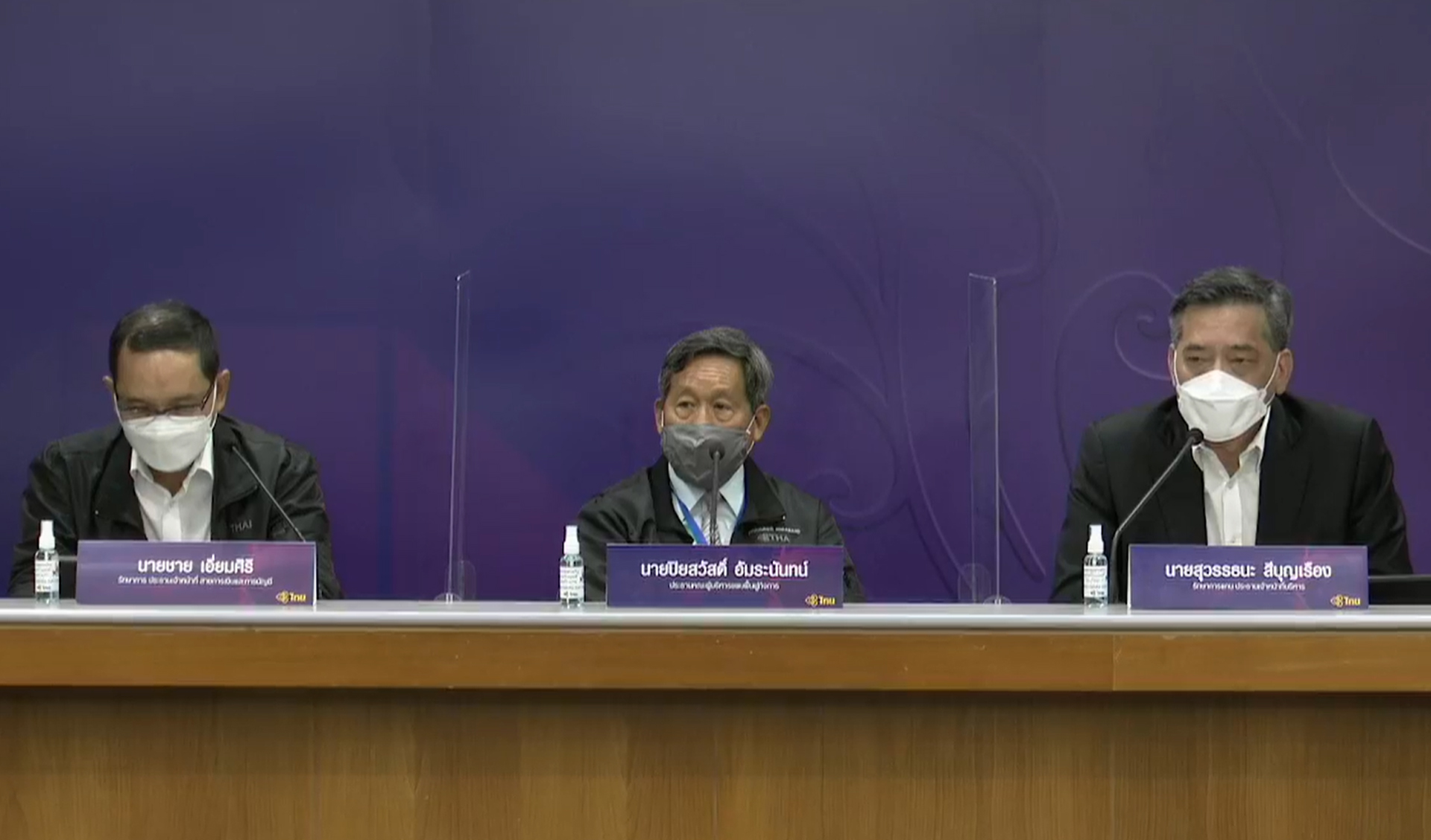 (ปิยสวัสดิ์ อัมระนันทน์ ประธานคณะผู้บริหารแผนฟื้นฟูกิจการ บกท. (กลาง) แถลงผลการดำเนินงานประจำปี 2564 ของ บกท. เมื่อวันที่ 28 ก.พ. 2565)