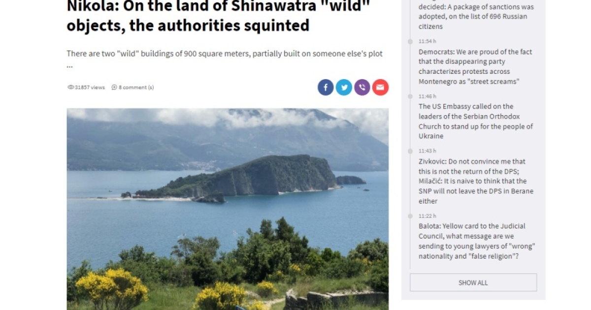 หมายเหตุ:สำนักข่าวอิศรา (www.isranews.org) ได้ติดตามข้อมูลเกี่ยวกับธุรกิจของนายทักษิณ ชินวัตร อดีตนายกรัฐมนตรีในต่างประเทศ หลังจากหลุดจากตำแหน่งนายกรัฐมนตรีมาอย่างต่อเนื่อง และล่าสุดพบรายงานข่าวที่สำคัญจากสำนักข่าว vijesti ของประเทศมอนเตเนโกรลงวันที่ 28 ก.พ. ในหัวข้อว่าโครงการก่อสร้างของบริษัทของนายทักษิณที่ประเทศมอนเตเนโกรนั้นอาจจะมีส่วนในการรุกที่ ซึ่งผิดกฎหมาย และเป็นอันตรายต่อสิ่งแวดล้อมของเกาะในประเทศมอนเตเนโกร โดยสำนักข่าวอิศราได้นำเอารายงานข่าวมานำเสนอมีรายละเอียดดังนี้