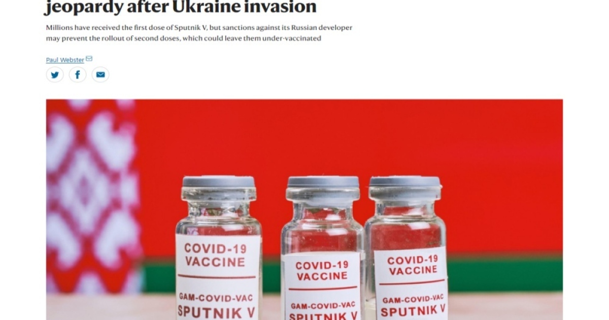 อย่างไรก็ตามสำนักข่าว Nature ซึ่งเป็นสำนักข่าวด้านวิทยาศาสตร์ของสหรัฐอเมริกา ได้มีการรายงานข่าวว่าอีกปัญหาหนึ่งที่สงครามในครั้งนี้จะส่งผลต่อสถานการณ์การระบาดของไวรัสโควิด-19 ก็คือปัญหาในแง่ของอุปทานด้านวัคซีนป้องกันไวรัสโควิด-19 โดยเฉพาะยี่ห้อสปุตนิกวี ที่ผลิตจากประเทศรัสเซียเอง